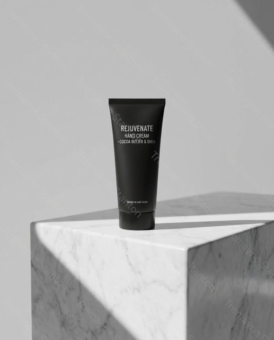 I rendered a minimalist marble pedestal with sharp, architectural shadows to create a high-fashion look.