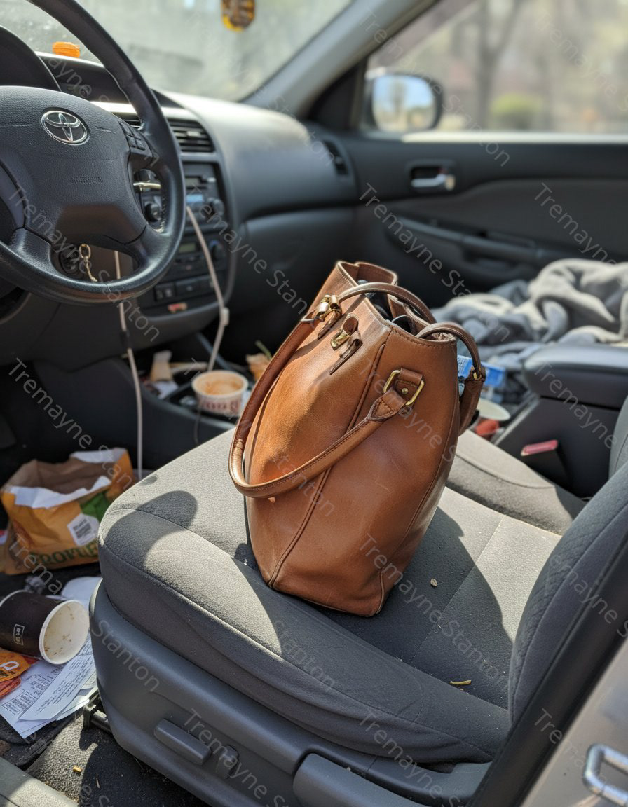 Car seats are cramped environments that don't show off the texture or scale of a handbag.