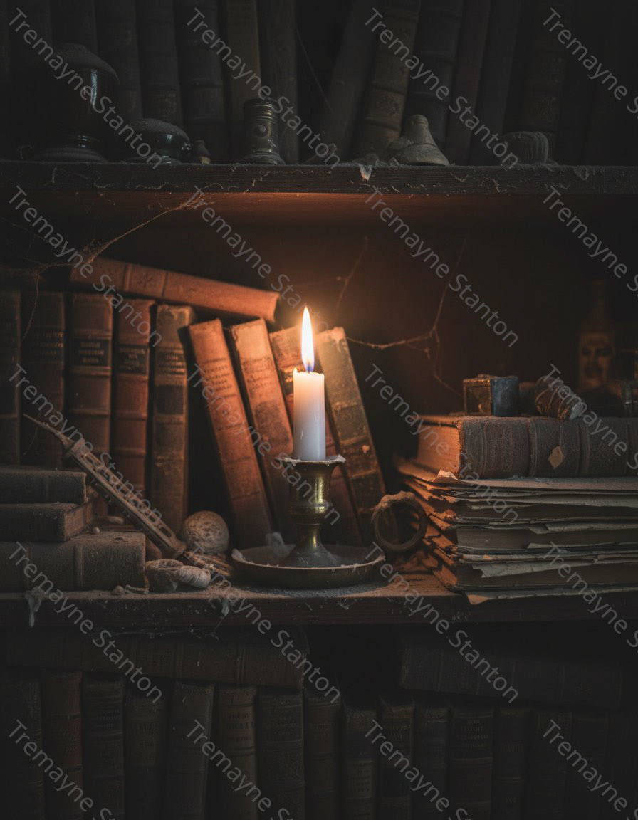 Cluttered bookshelves and poor lighting make a candle look like a household utility rather than a luxury.