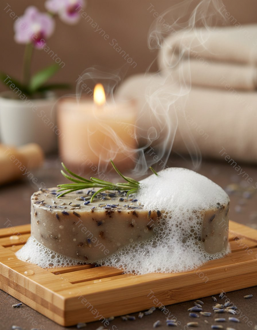 I used a bamboo tray and added steam and macro-detail soap suds to create a spa-like atmosphere.